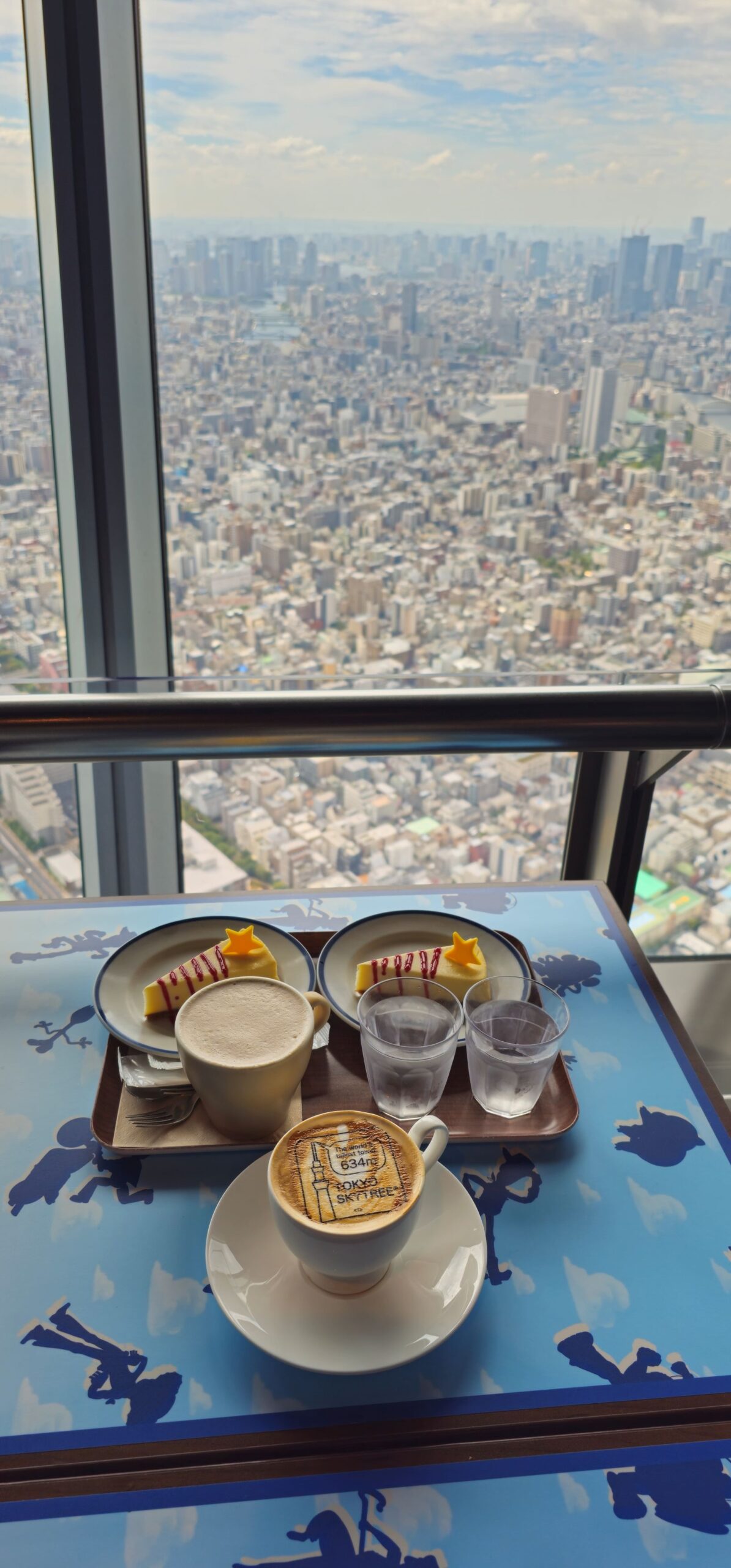 Gestern hatten wir Tickets für den Skytree, einen 634 m hohen Turm, aktuell der dritthöchste der Welt. Er hat zwei Aussichtsdecks – eines auf 350 m und eines auf 450 m – von denen man bei gutem Wetter einen weiten Blick über ganz Tokio hat. Obwohl für den Tag eigentlich Regen angekündigt war, hatten wir Glück: pünktlich zu unserem Besuch klarte es auf, und wir konnten die beeindruckende Aussicht genießen. Nur der Fuji blieb die ganze Zeit hinter Wolken verborgen.