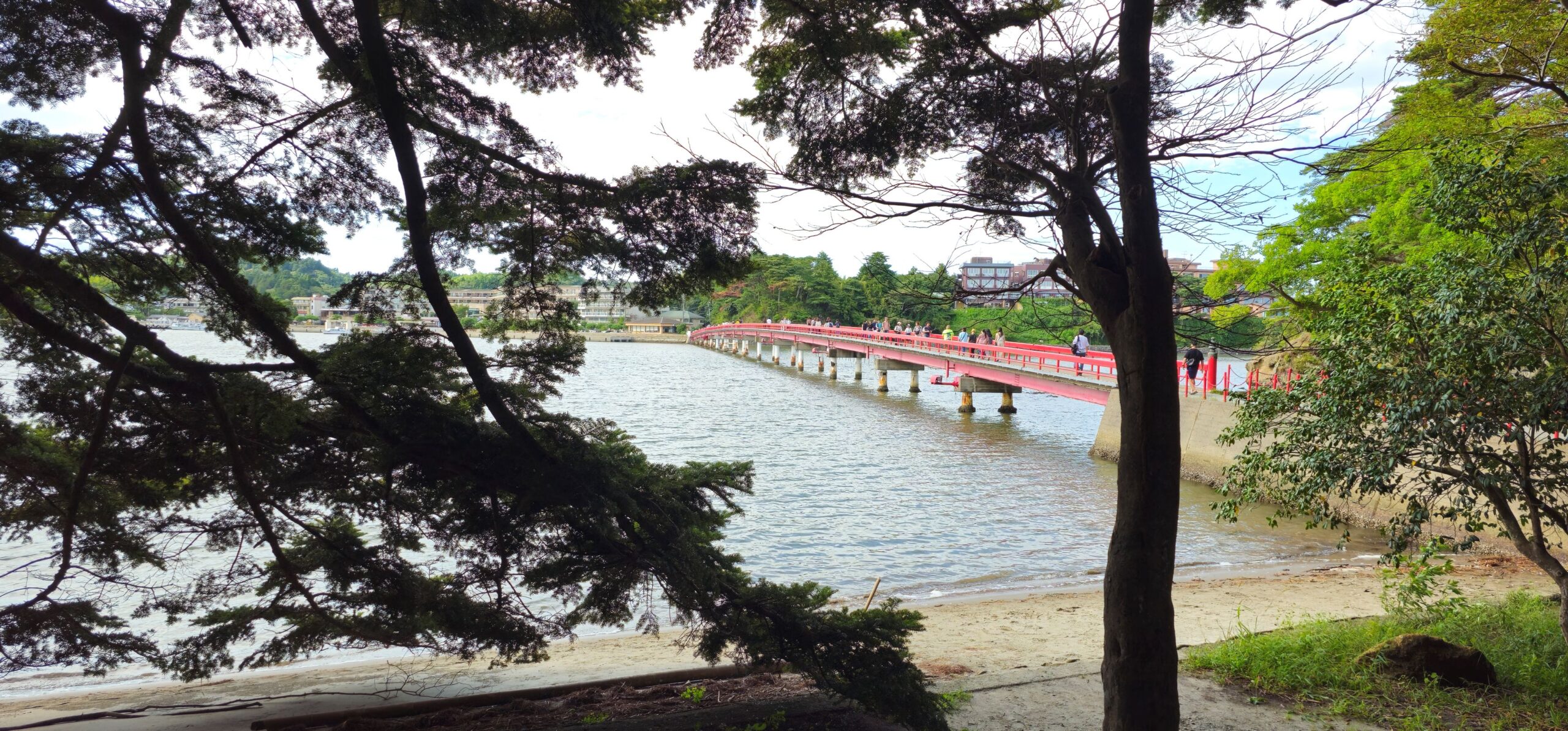 In Matsushima schaute ich mir zunächst die Schreine und Tempel direkt beim Pier an. Danach überquerte ich eine Fußgängerbrücke zur Insel Fukuura.
