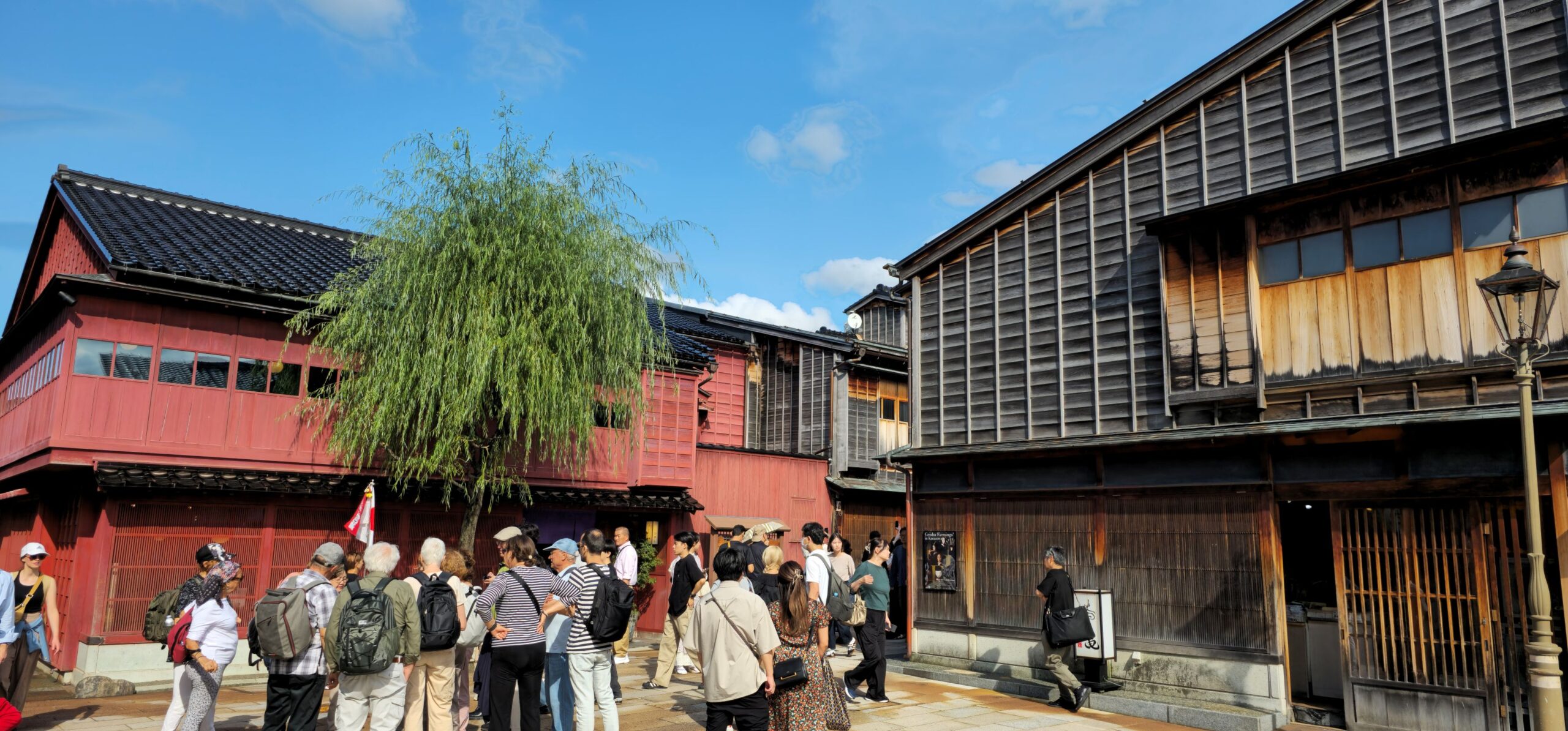 Am Montag besuchten wir das Viertel mit den alten Samurai-Häusern. Es war interessant, aber nicht so beeindruckend wie das Geisha-Viertel, da die alten Häuser hier eher vereinzelt zwischen modernen Gebäuden standen. Wir wollten auch das Ninja-Waffen-Museum besichtigen, aber schon von außen sah man, dass es sich nur um einen kleinen Ausstellungsraum handelte. Der Hauptanziehungspunkt schien zu sein, dass man dort Shuriken (Ninja-Wurfsterne) werfen konnte – das hatte ich allerdings schon vor zwei Jahren in Kyoto gemacht. Also ließen wir das Museum aus und schlenderten weiter durch das Viertel.
