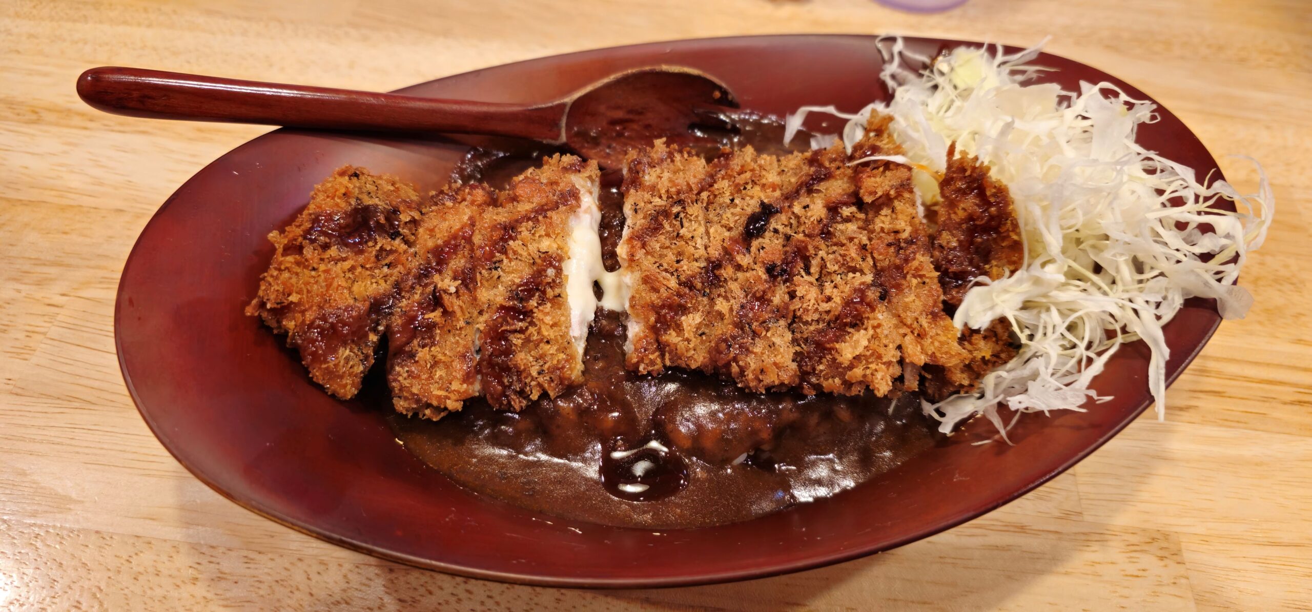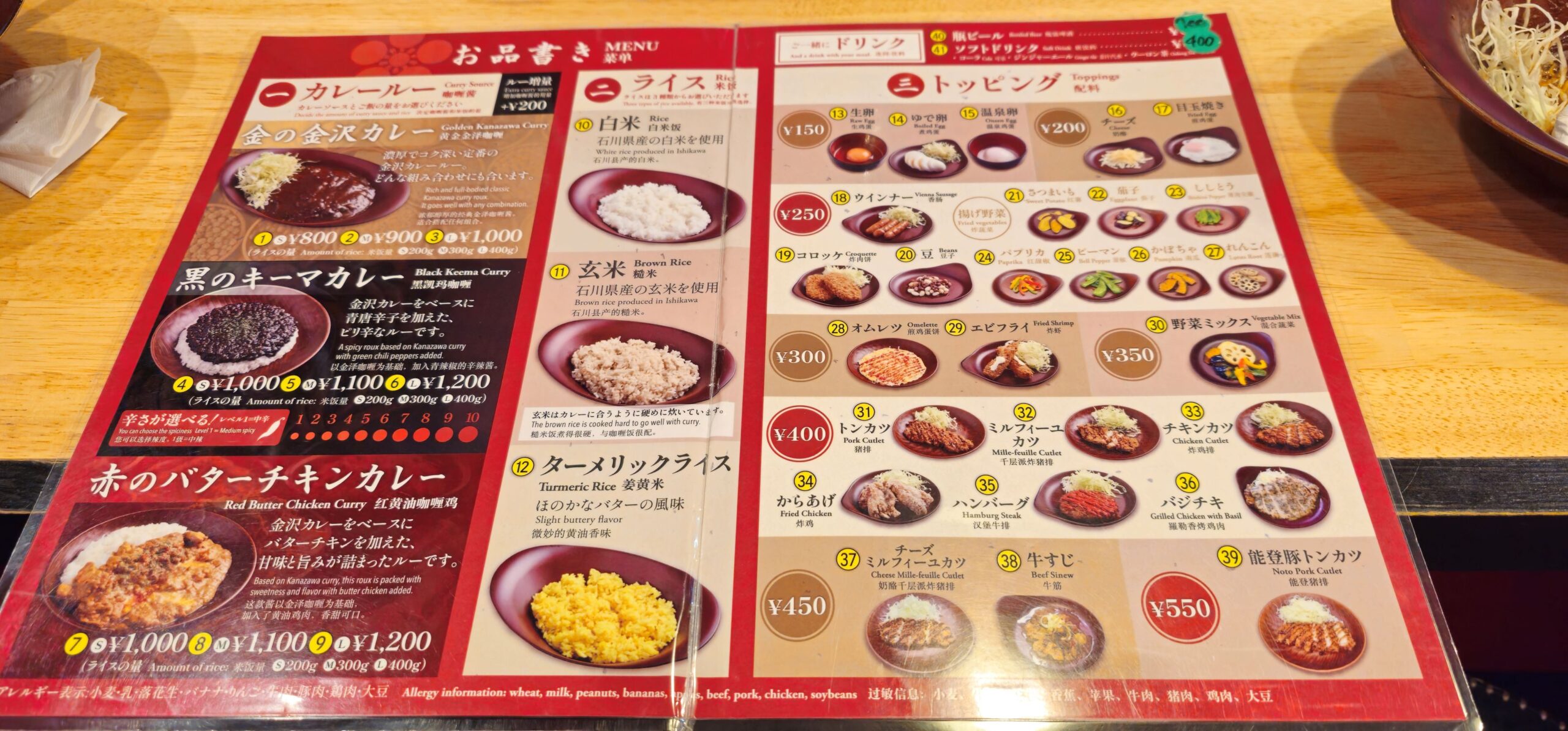 Da ich bereits am Sonntag japanisches Curry essen wollte, wir aber im Geisha-Viertel nicht dazu kamen, hatte Markus diesmal ein tolles Restaurant gefunden: das „Kanazawa Curry Laboratory“. In Japan ist es üblich, dass sich ab 18 Uhr vor vielen Restaurants Schlangen bilden – und so war es auch hier. Als wir ankamen, war die Schlange noch überschaubar, doch wir warteten trotzdem über 30 Minuten. Es hatte sich absolut gelohnt! Man konnte sich das Curry selbst zusammenstellen – Sauce, Reis und Toppings. Ich wählte das „Golden Kanazawa Curry“ mit normalem Reis und einem Schweinefleisch-Käse-Millefeuille-Schnitzel, das aus mehreren dünnen, übereinandergeschichteten Scheiben besteht. Das Ganze kostete umgerechnet gerade einmal 6.50 CHF! Als wir das Restaurant verließen, war die Schlange bereits dreimal so lang wie zuvor – ein deutliches Zeichen, wie beliebt der Laden ist.