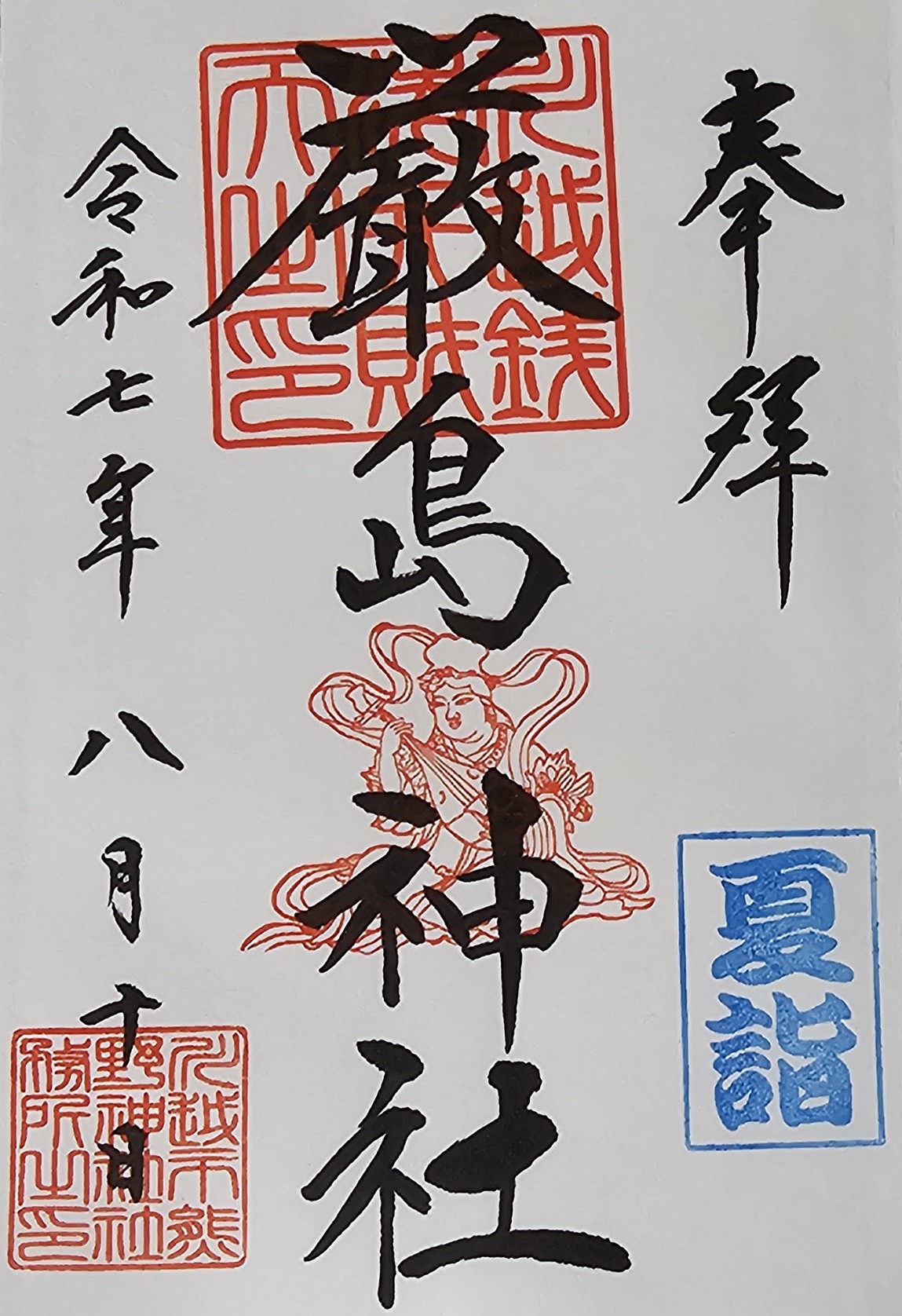 Kawagoe Kumano SchreinGoshuin / 10. August 2025 / Schreiben Sie einen Kommentar Goshuins Typ: Ins Goshuin-cho geschriebenSaisonal: NeinPreis: 500 YenBesonderheit: Zweifarbige Stempel Typ: Papier zum einklebenSaisonal: JaPreis: 800 YenBesonderheit: Ein Papier für zwei Seiten