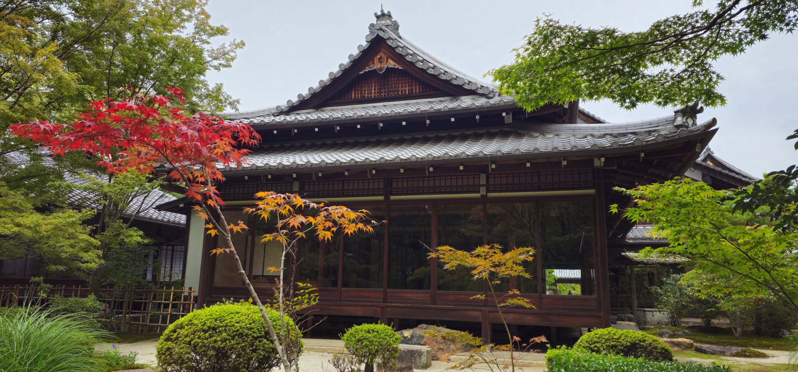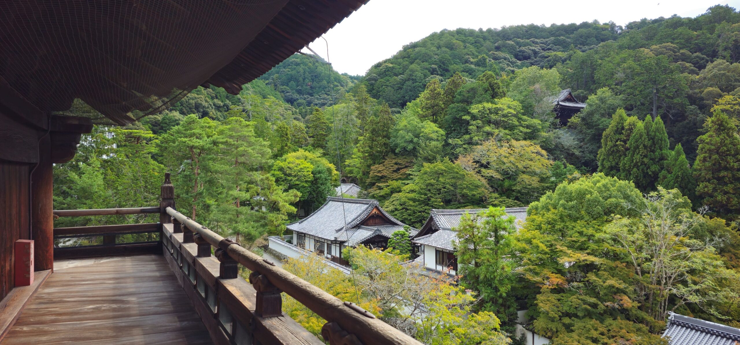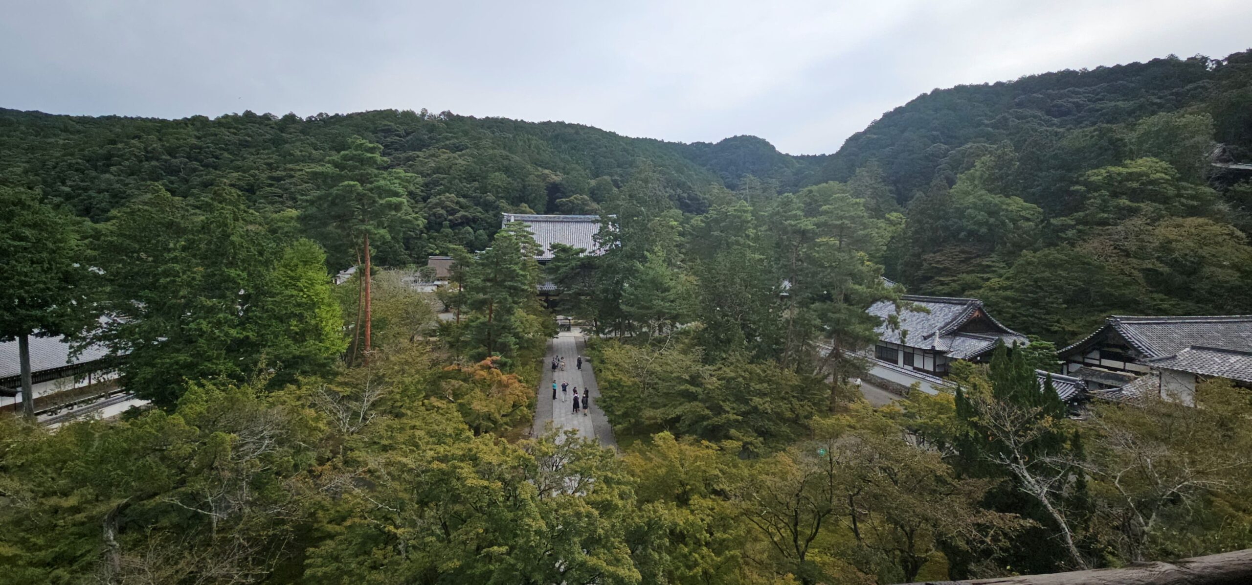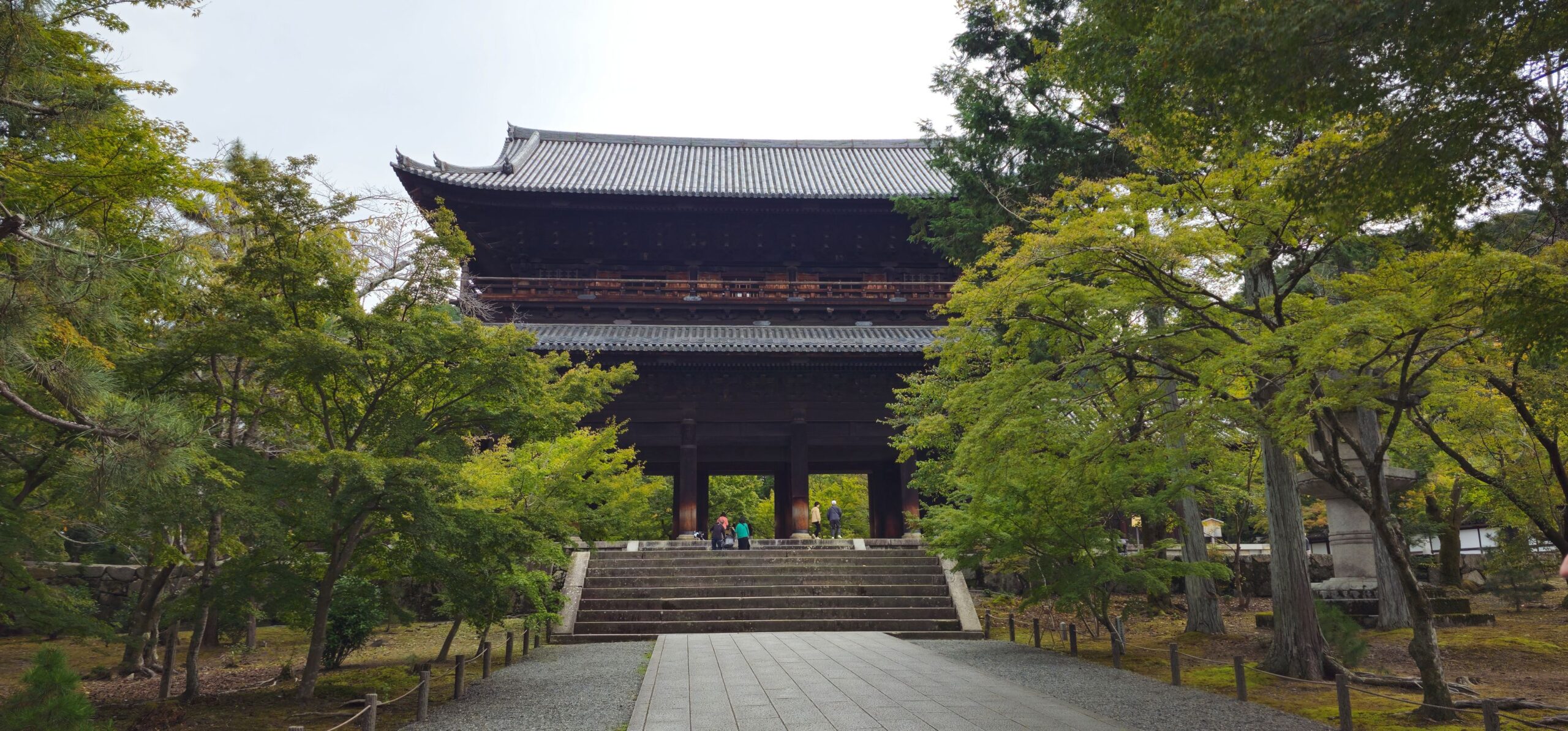 Vorgestern besuchten Markus und ich unseren ersten Tempel in Kyoto, der etwas abseits der Touristenmassen lag. Witzig dabei ist, dass ich von diesem Tempel durch eine TV-Serie erfahren hatte und er mir im Gedächtnis geblieben war. Auf dem Gelände stand zunächst ein großes Eingangstor, ähnlich wie in Nara – nur kleiner, aber immer noch imposant. Das Besondere daran war, dass man in das Tor hineingehen und zur oberen Etage hinaufsteigen konnte, von wo aus man das gesamte Gelände überblickte. Wir wussten das im Voraus gar nicht, sondern entdeckten es nur, weil wir Menschen auf dem Tor sahen. In all meinen Reisen durch Japan konnte ich bisher nur in einem anderen Tempel weiter als bis zum Altar – das war auf dem Mount Shosha, wo Szenen von The Last Samurai gedreht wurden.