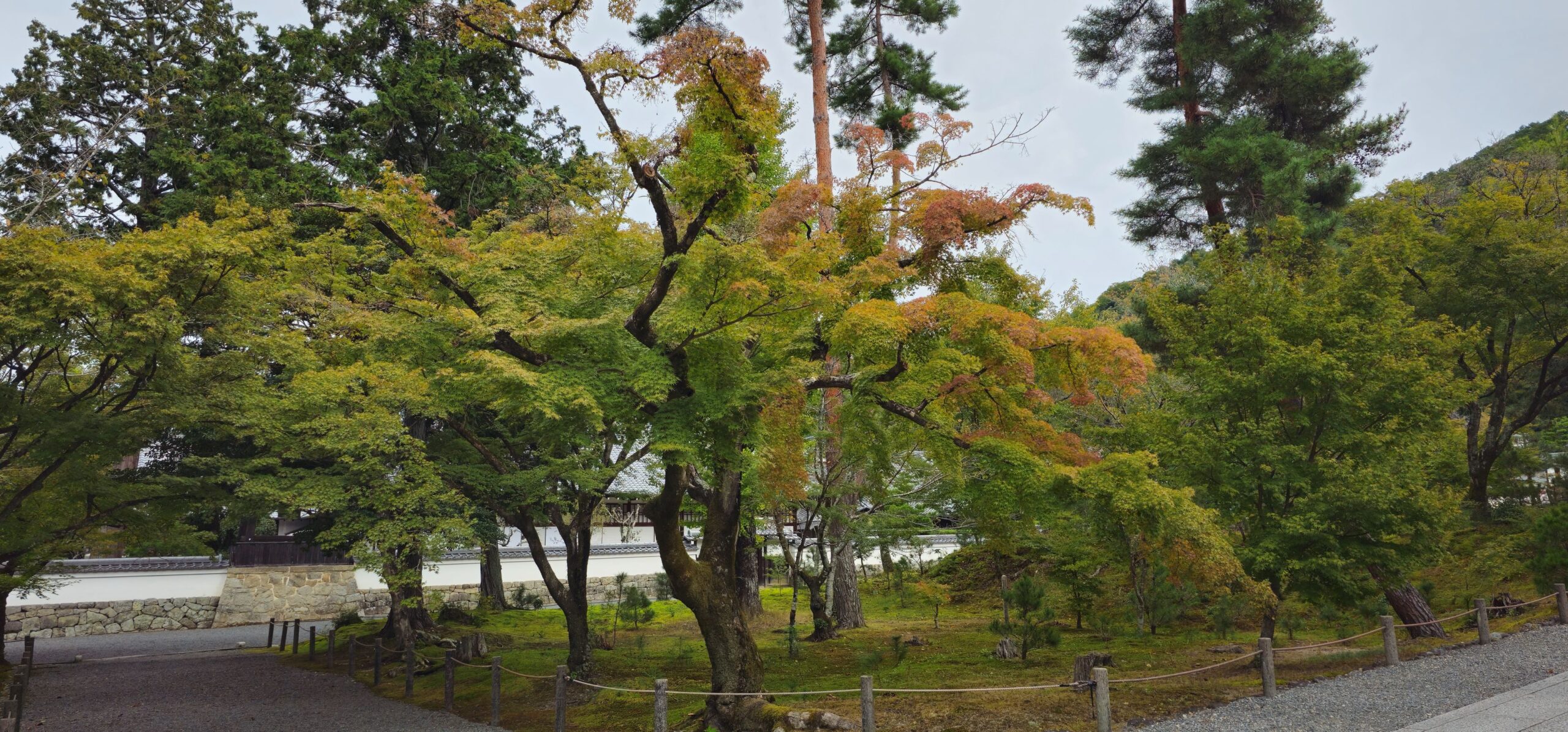 Die Aussicht war wunderschön, da das Tor mitten in einem kleinen Park lag. Leider sind wir ein bis zwei Wochen zu früh, um die Bäume in ihren bekannten Herbstfarben zu sehen. Erste Färbungen lassen sich aber schon erkennen, und bei 17 °C mit leichtem Wind war es das erste Mal, dass mir in Japan – trotz Sweatshirt – etwas kühl wurde. Ich habe mich wohl stärker an die japanische Hitze gewöhnt, als ich dachte.