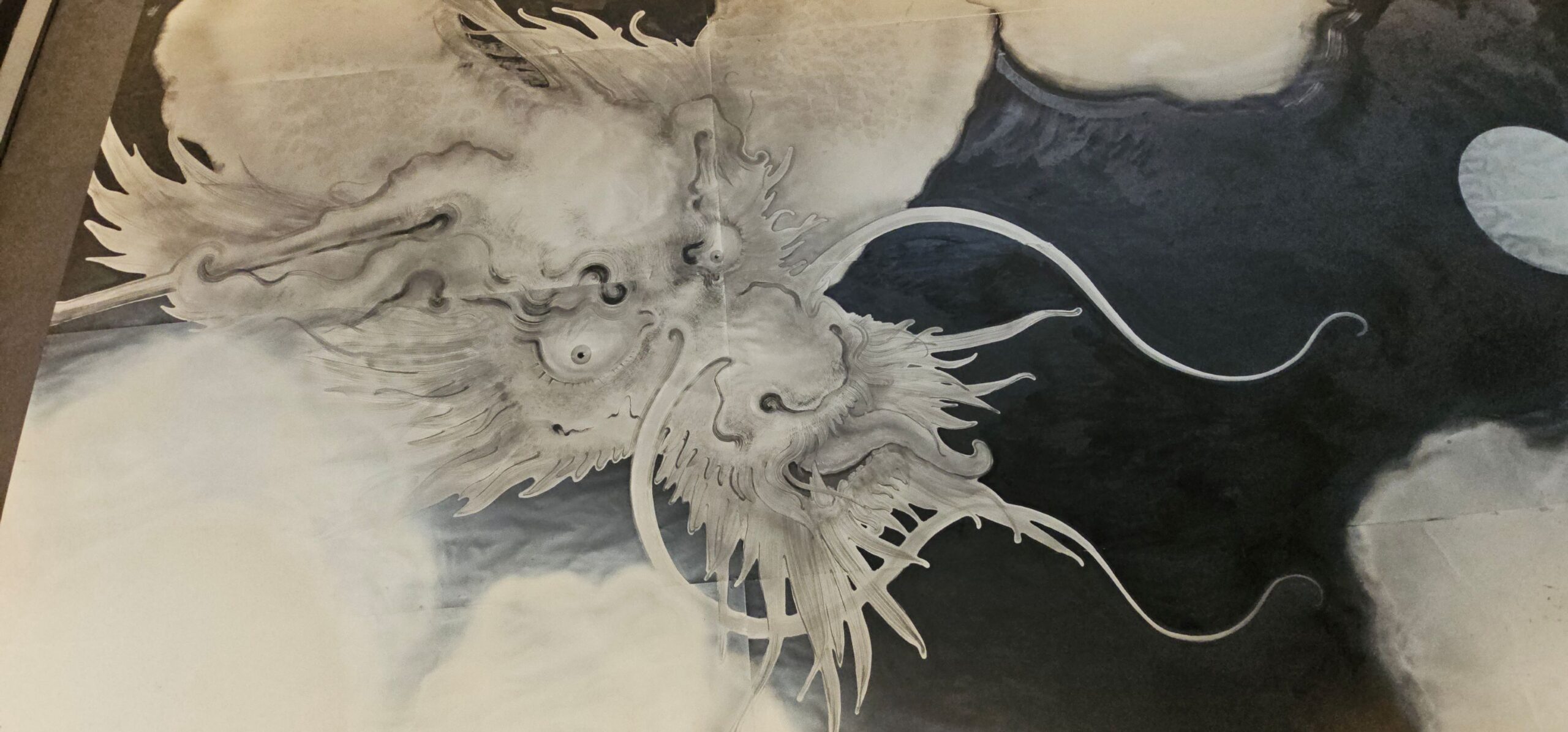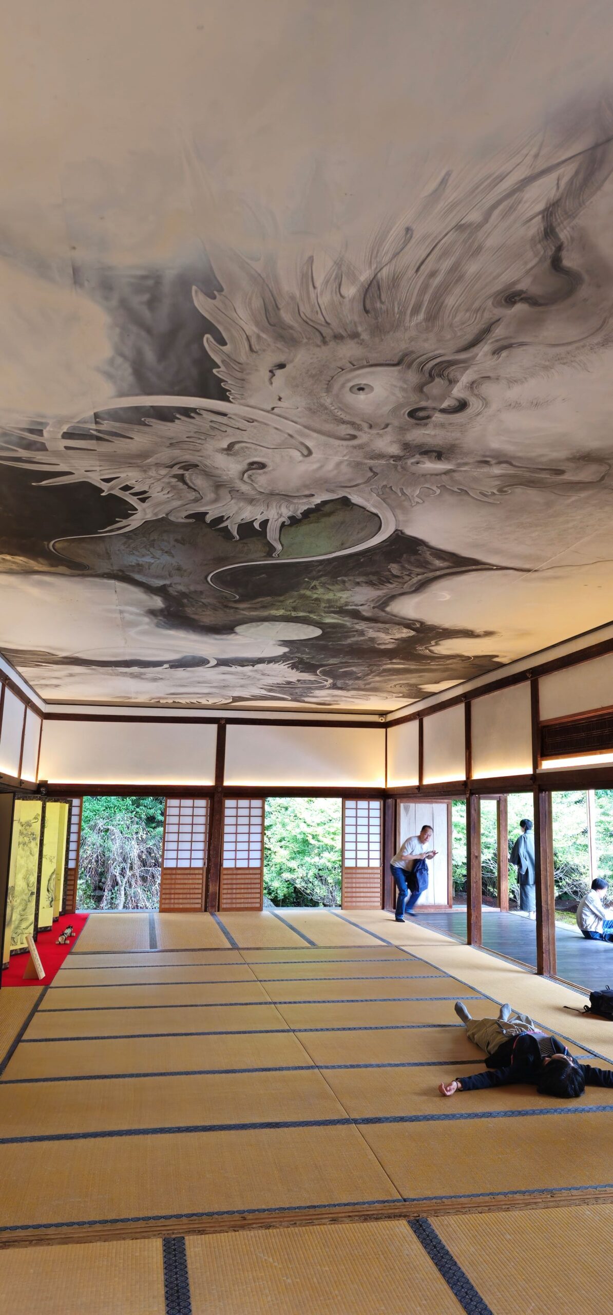 Zurück im Zentrum kamen wir noch an einer weiteren Tempelanlage vorbei und besichtigten dort ein Gebäude mit beeindruckenden Deckenmalereien von Drachen.