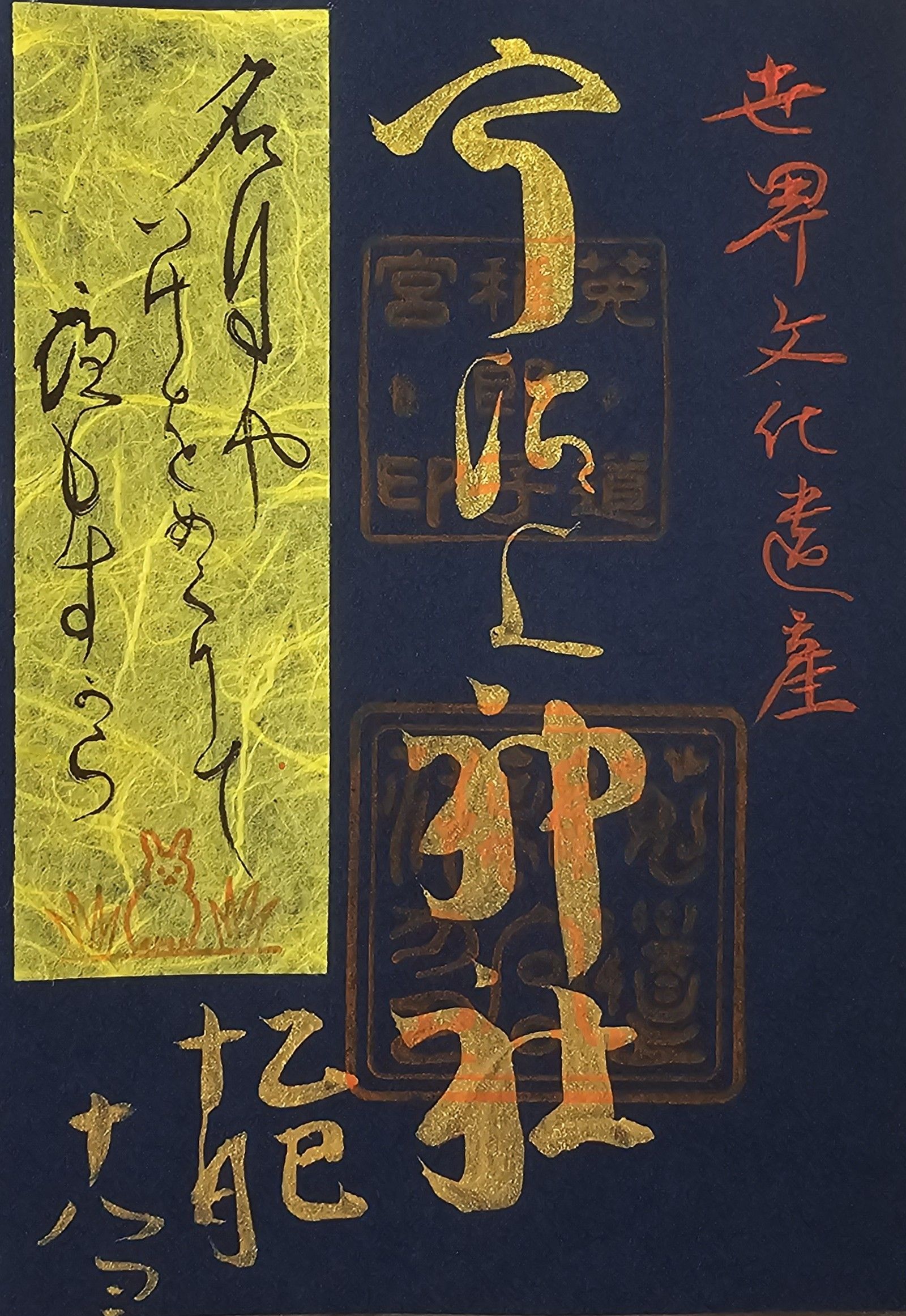 Bei der ersten Tempelanlage, Kofuku-ji, bemerkte ich, dass Besucher diesmal in einen der Tempel hineingehen konnten – das war beim letzten Mal nicht möglich. Also sahen wir uns genauer um und entdeckten, dass man Tickets für die Innenräume kaufen konnte. Dort fanden wir auch ein besonders schönes Goshuin: ein filigraner Scherenschnitt auf weißem Papier mit goldener Folie dahinter. Dieses schöne Stück hatte ich das letzte Mal verpasst – diesmal habe ich natürlich gleich zugeschlagen. In den Tempeln waren viele beeindruckende Statuen, doch wie üblich durfte man dort keine Fotos machen.