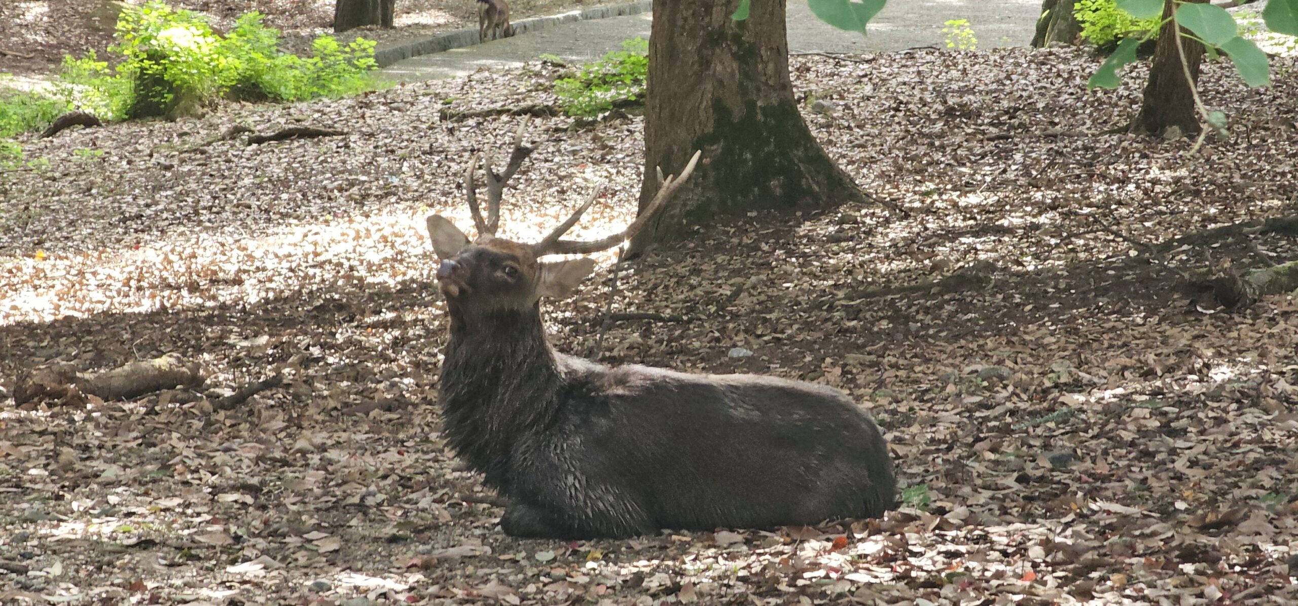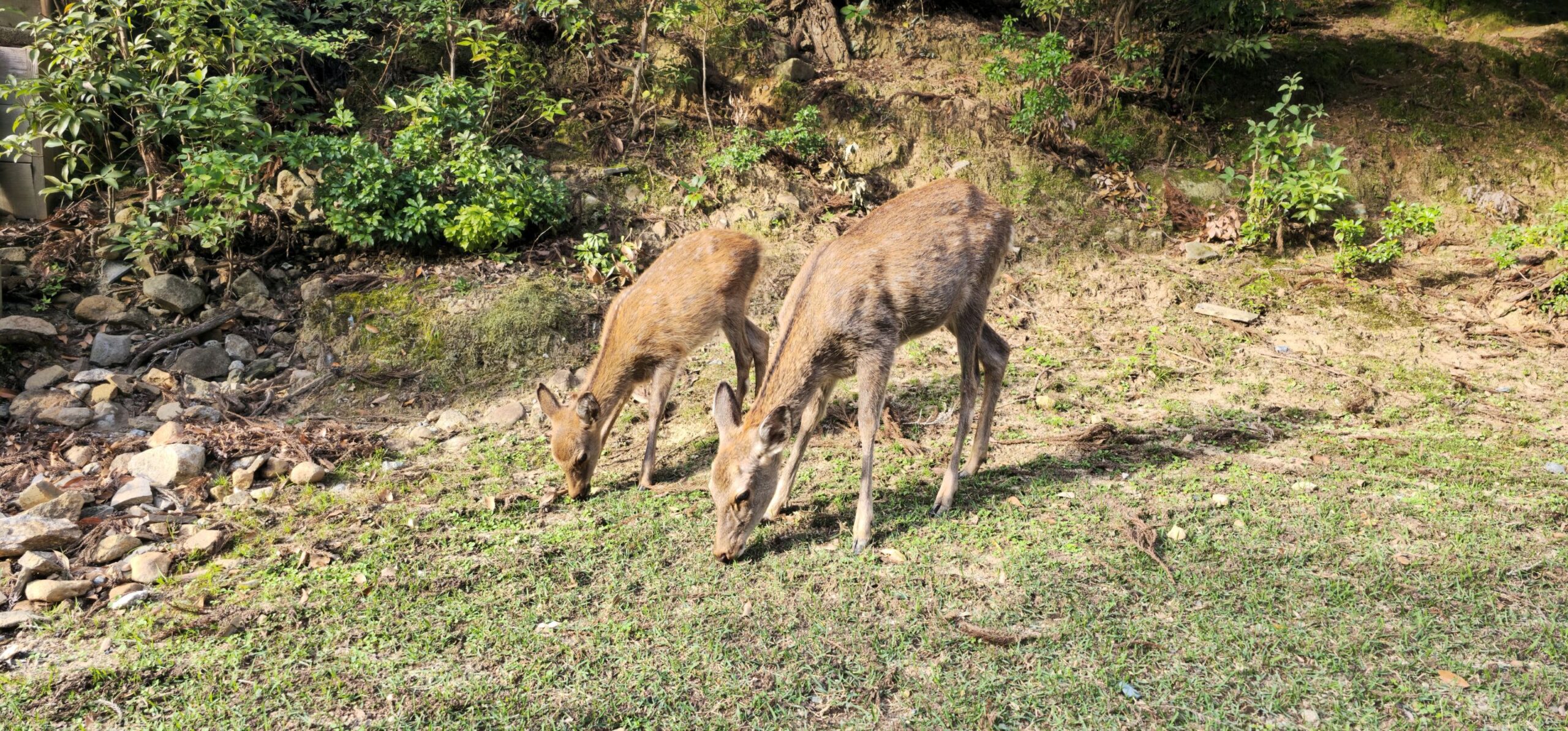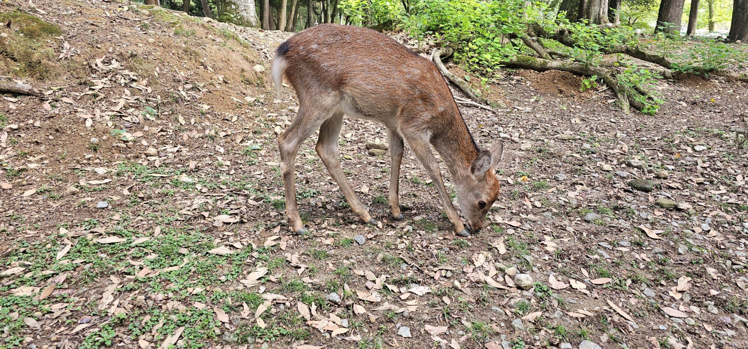 Nach dieser kleinen Überraschung machten wir uns auf den Weg zu den bekannten Sehenswürdigkeiten der Stadt. Ich war bereits einmal in Nara, für Markus war es der erste Besuch. Also übernahm ich ein wenig die Führung und zeigte ihm den Park und die Tempelanlagen. Über das gesamte Gelände verteilt leben mehrere Hundert Rehe und Hirsche, die in Japan sehr bekannt sind, weil sie an Menschen gewöhnt sind. Man kann dort spezielle Obladen kaufen und die Tiere damit füttern. Dabei „verbeugen“ sie sich – ähnlich wie die Japaner selbst –, bevor sie die Oblade entgegennehmen.